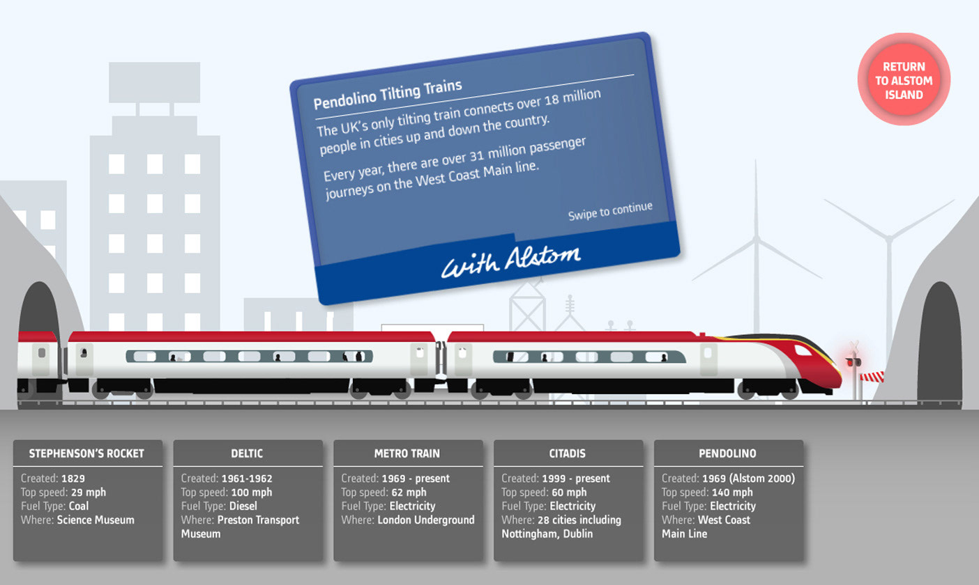 Game design for Alstom's interactive installation at the Science Museum, an immersive journey through the evolution of the railway system and how the energy infrastructure powers our life.